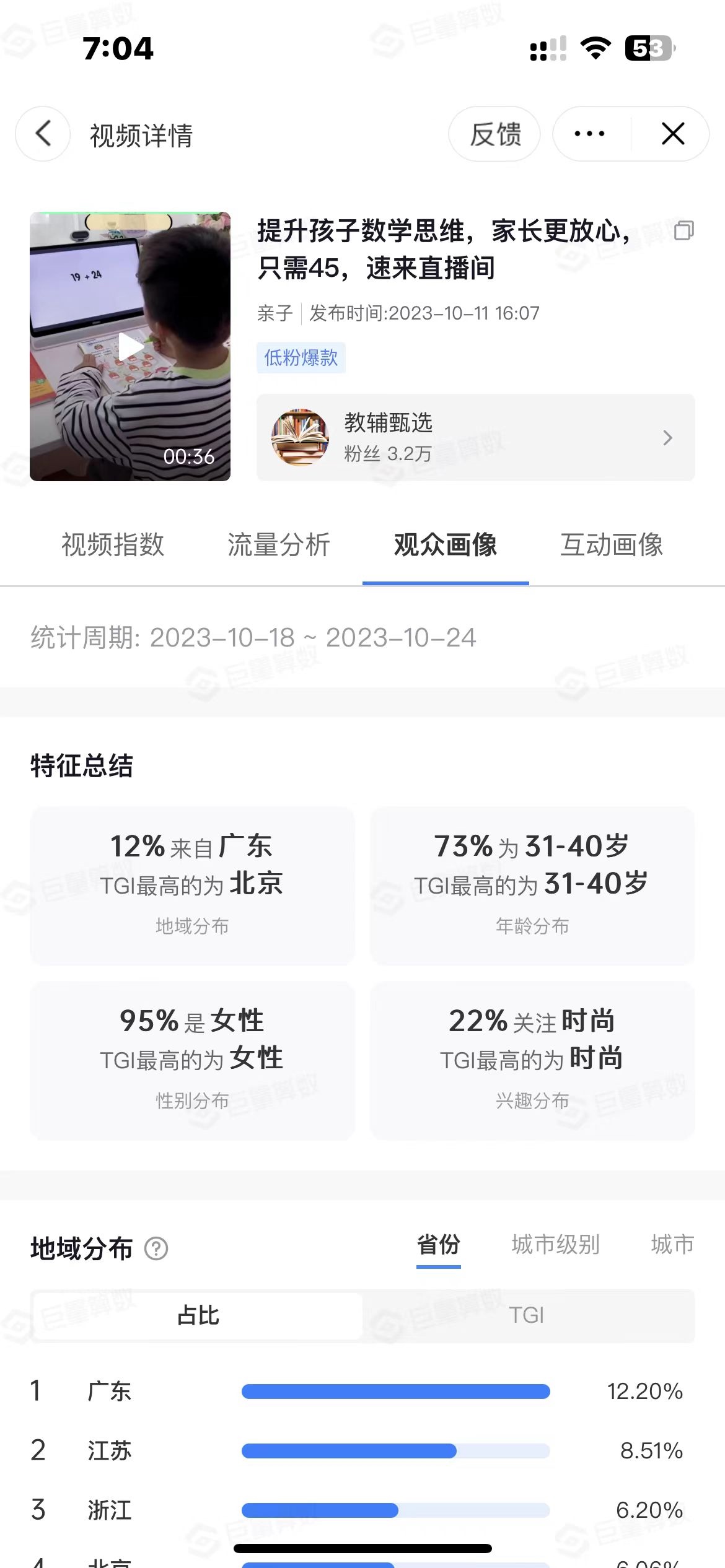 这些主动观看的用户画像里面。绝大多数是女性来进行观看的,在于此同时22%的人关注了时尚,说明目前大家手上是能够为育儿这样一件事情投入金钱的,这也是未来长期存在的一个趋势。